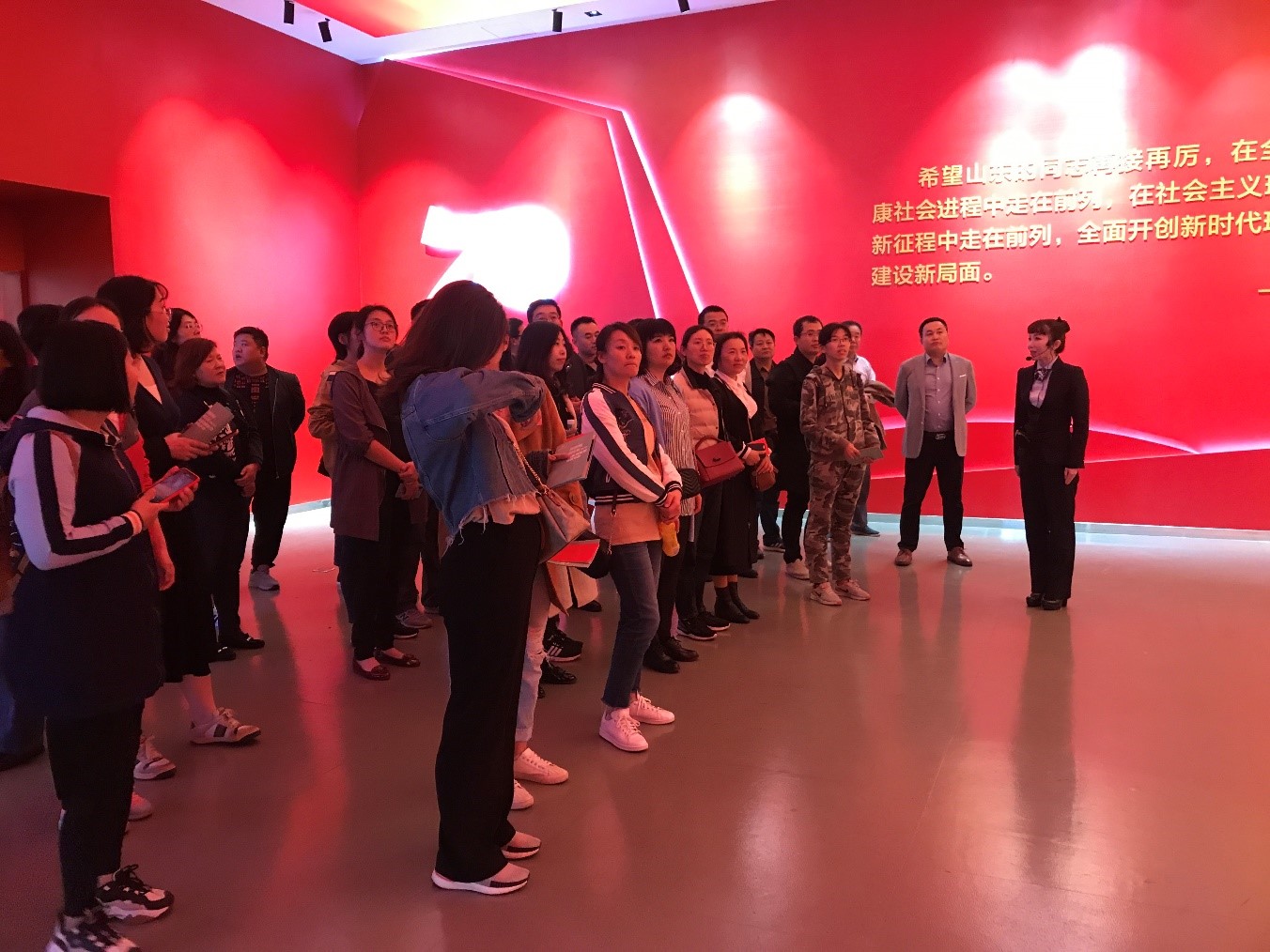 为庆祝新中国成立70周年,提升党员的党性修养,激发党员群众的爱国热情,结合主题党日活动,10月23日下午,M88党委组织驻济党员群众赴山东博物馆参观“奋进的山东—庆祝中华人民共和国成立70周年成就展”。