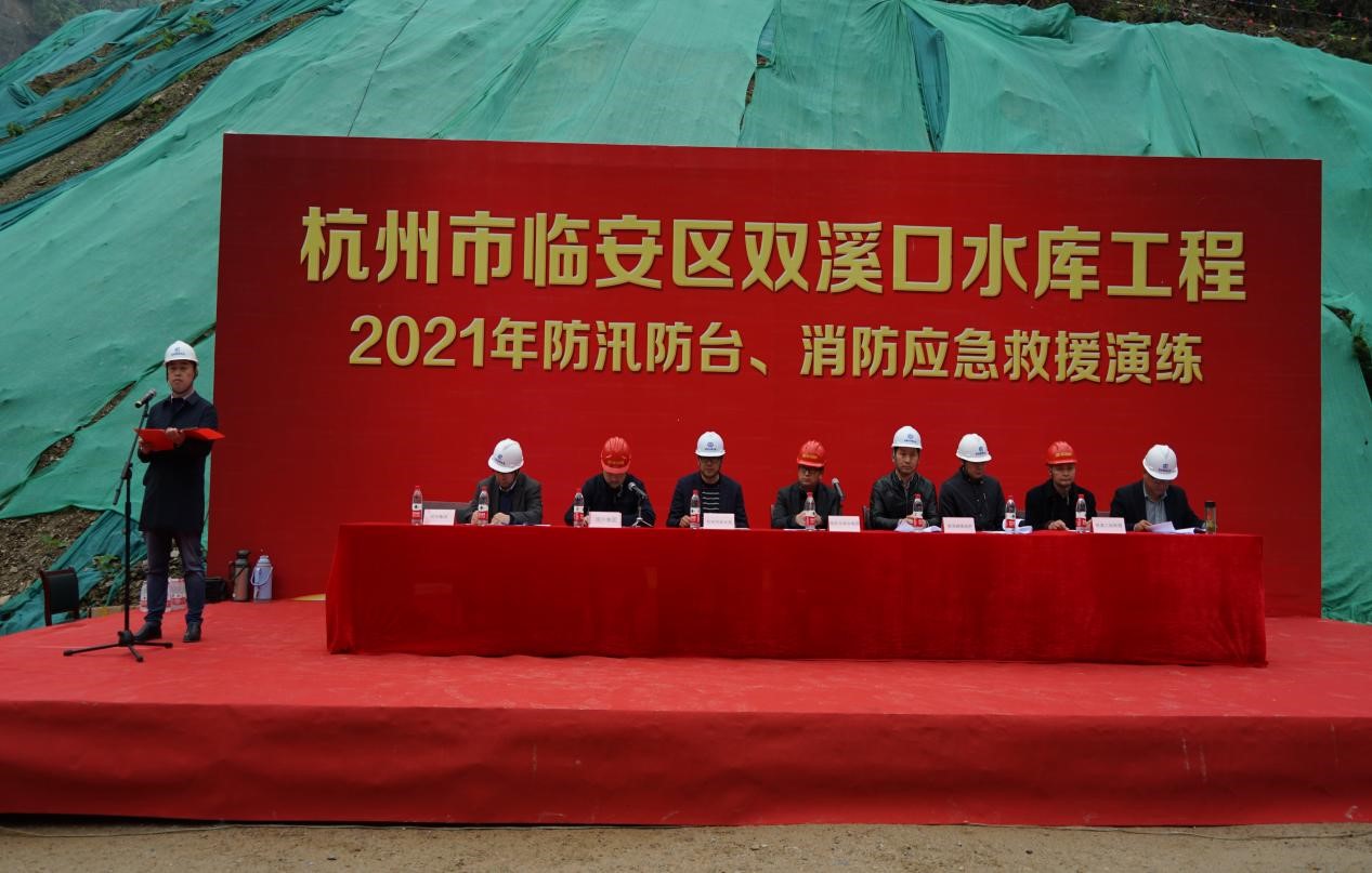 为进一步增强杭州市临安区双溪口水库工程参建人员防汛防台和消防安全意识,强化应急预案保障措施落实,提升参建各方应对突发性洪水和火灾等事件的应急能力,确保汛期施工人员生命财产安全。4月14日上午,在即将入汛之际,项目法人杭州鲁润水电开发有限公司组织各参建单位在双溪口水库工程现场开展了2021年防汛防台和消防应急救援演练活动,近70人参与现场演练。