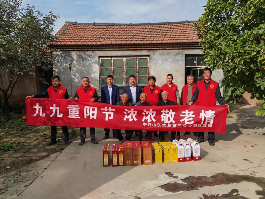 为弘扬中华民族尊老敬老的光荣传统,10月14日重阳节这天,第三分公司副总经理杨绪辉、王庆捷一行前往M88有限公司邹平市孝妇河提升改造工程施工4标项目部所在地,在高书记带领下看望东吕村的老党员们,为他们带去公司党委的关怀和温暖,送去慰问品并致以节日的问候和祝福。杨绪辉同老党员们亲切拉家常,详细询问了老党员们的生活情况和身体状况,嘱咐他们一定要保重身体,对他们为国家、为社会做出的贡献表达了崇高敬意。