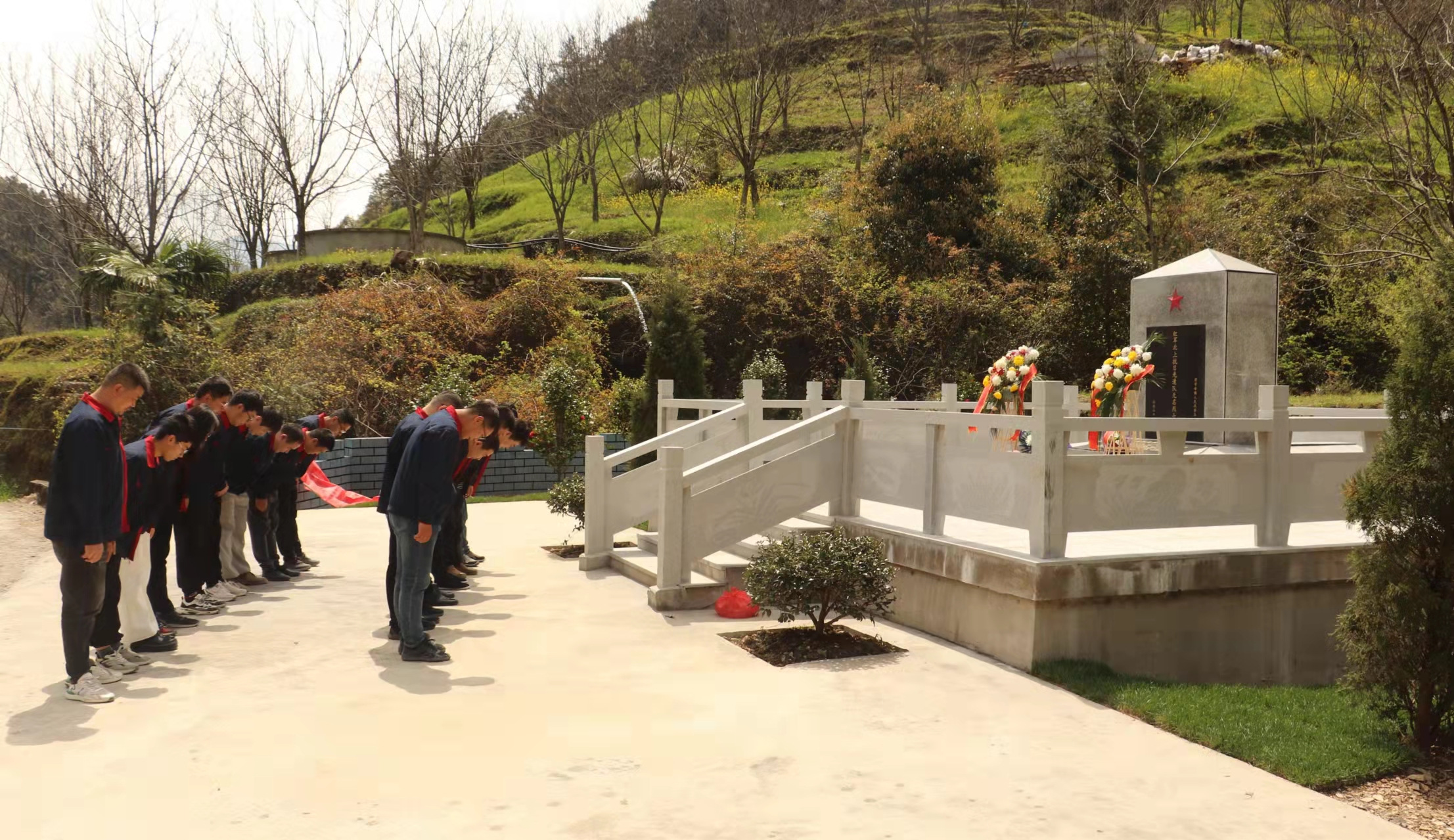 3月30日,突击队成员来到项目驻地清凉峰镇梓鹏坞的红军北上抗日先遣队无名烈士墓。面对着革命英雄的墓碑,队员们心情激动,思绪万千。通过瞻仰烈士墓碑、敬献鲜花、鞠躬默哀等方式,祭奠长眠于此的革命先烈。