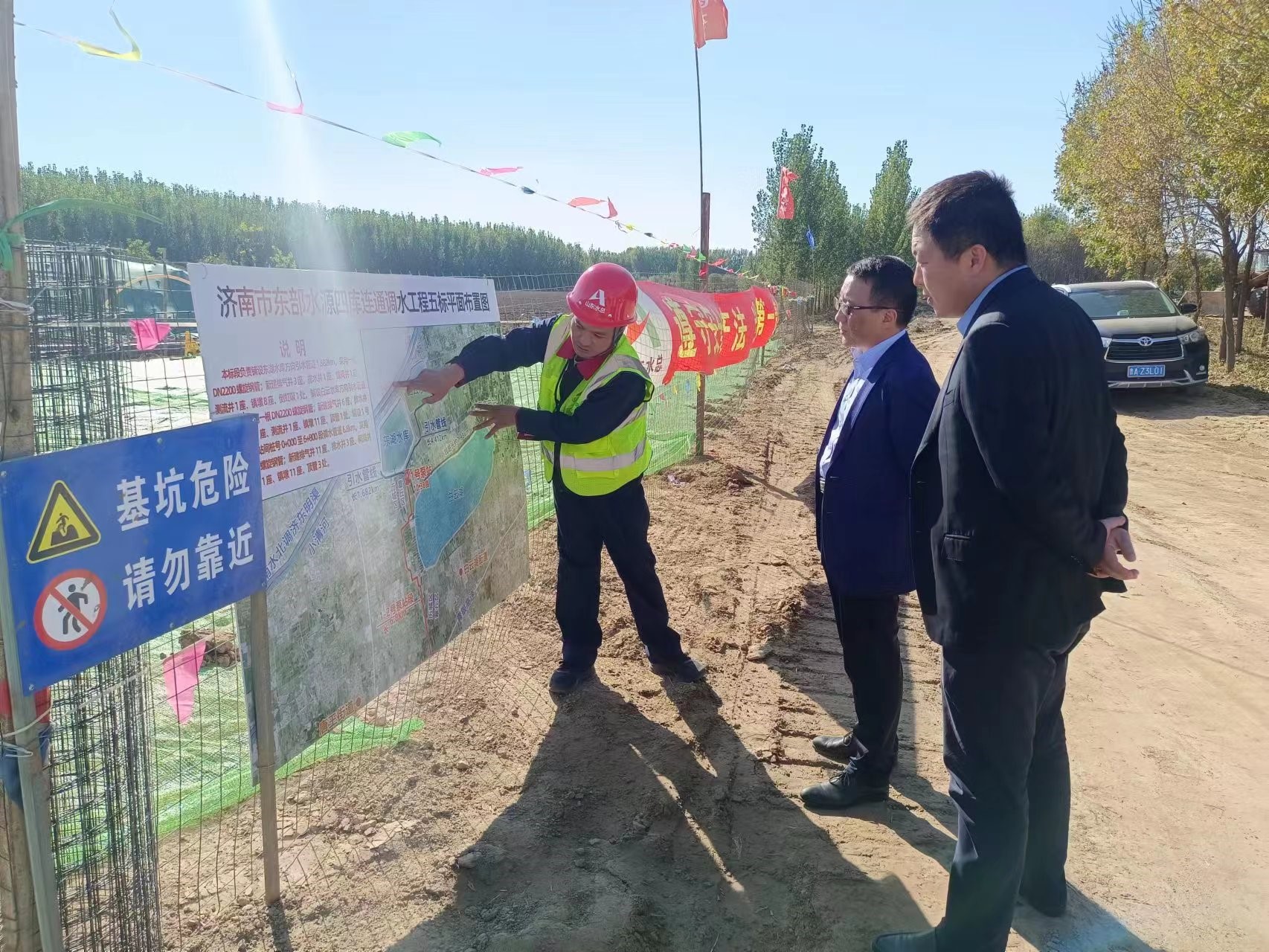 嵇可成一行检查了公司生产经营、疫情防控、信访稳定、安全生产等方面工作,现场检查了济南市东部水源四库连通调水工程建设情况。