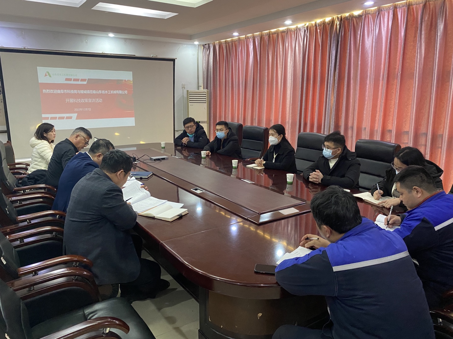 12月8日上午,曲阜市科学技术局党组书记王文涵、高新科科长高文龙以及陵城镇经济发展办公室一行到水工机械公司开展科技政策宣讲会。