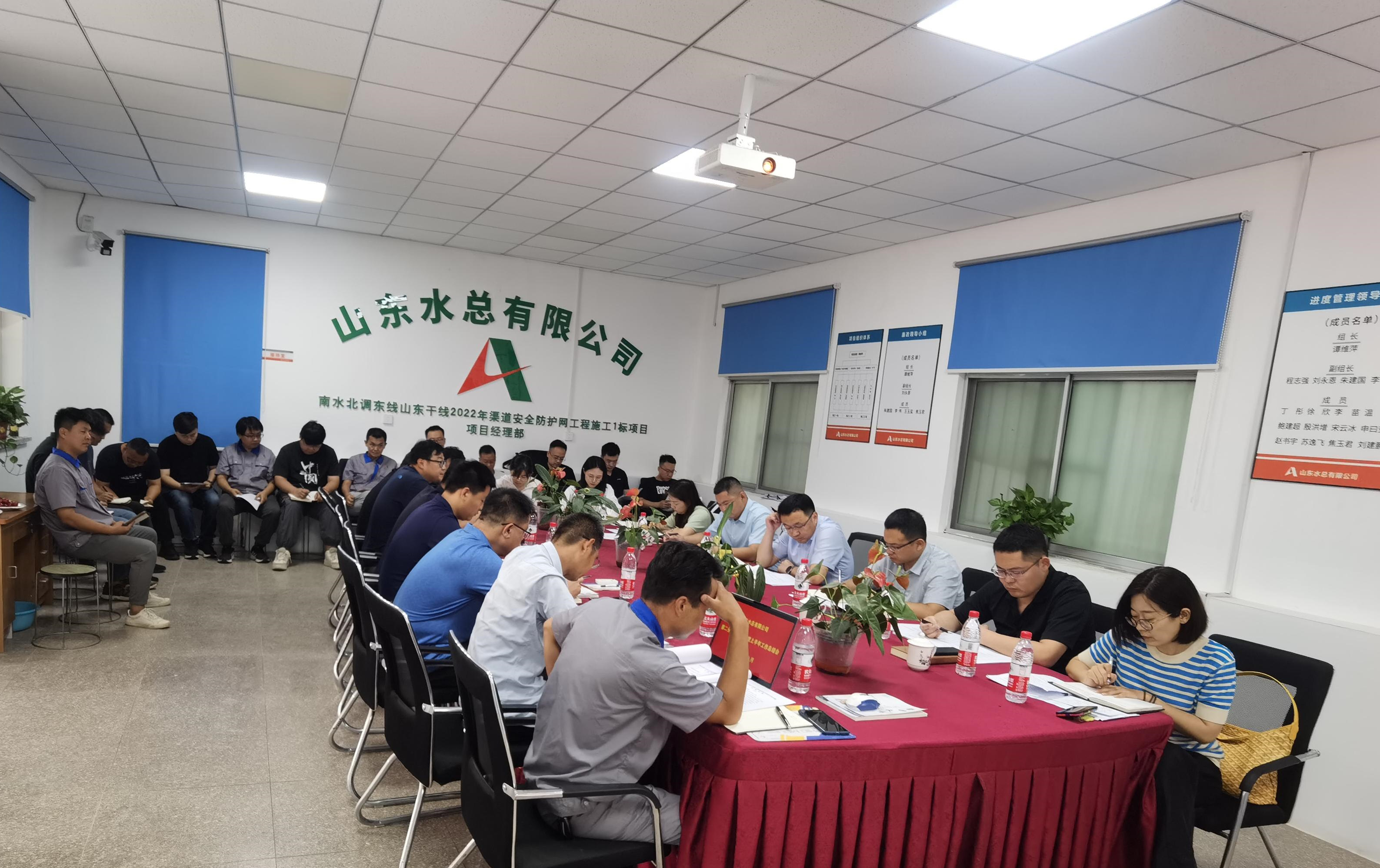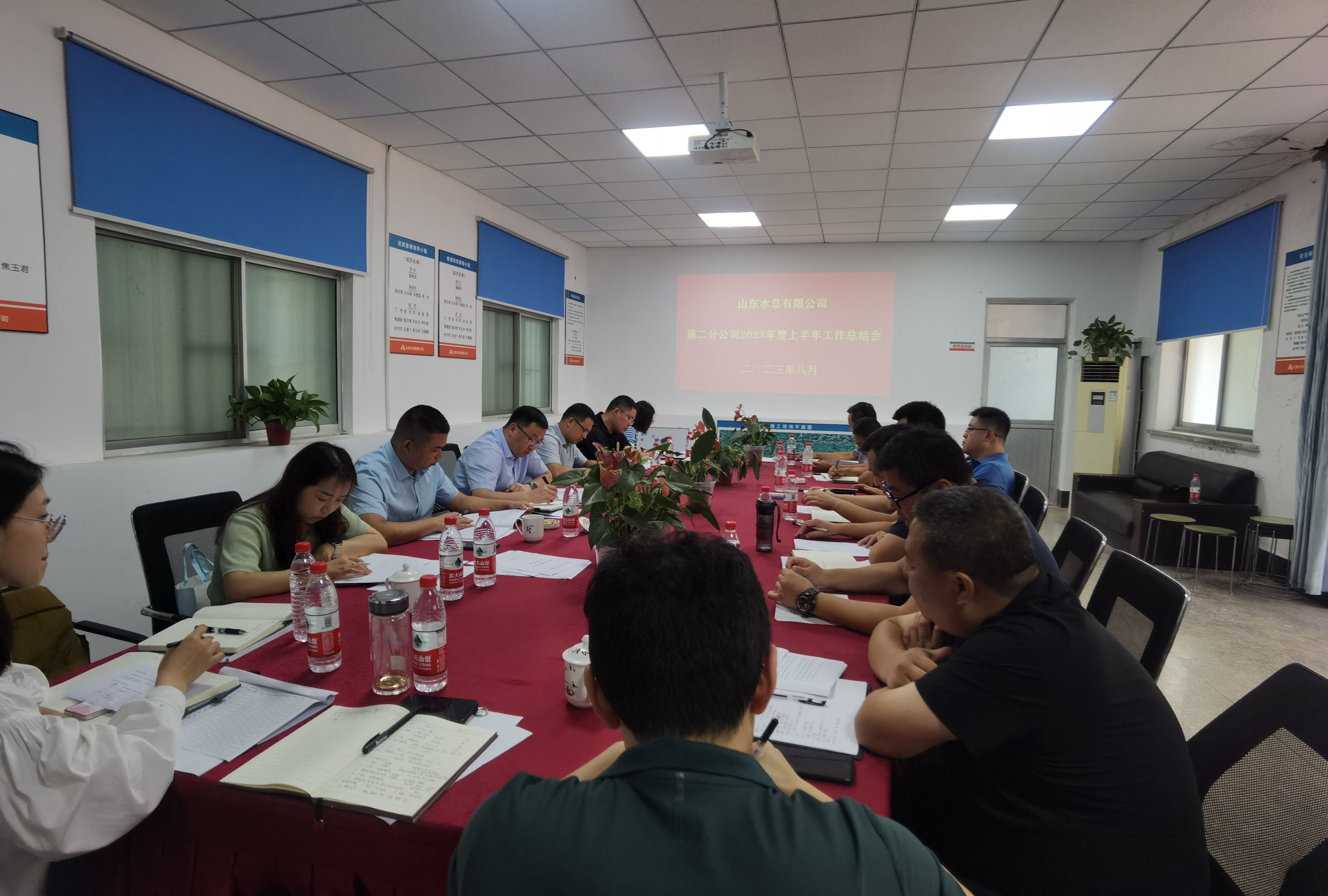 8月13日,第二分公司在南水北调山东干线2022年防护网工程项目部召开2023年度上半年工作会议,会议号召全体职工勠力同心,铆足干劲,锐意进取,为完成全年目标任务作出贡献。会议由分公司副总经理郝振超主持,领导班子、各科室负责人、各项目负责人、各项目机料和劳务专员参加会议。
