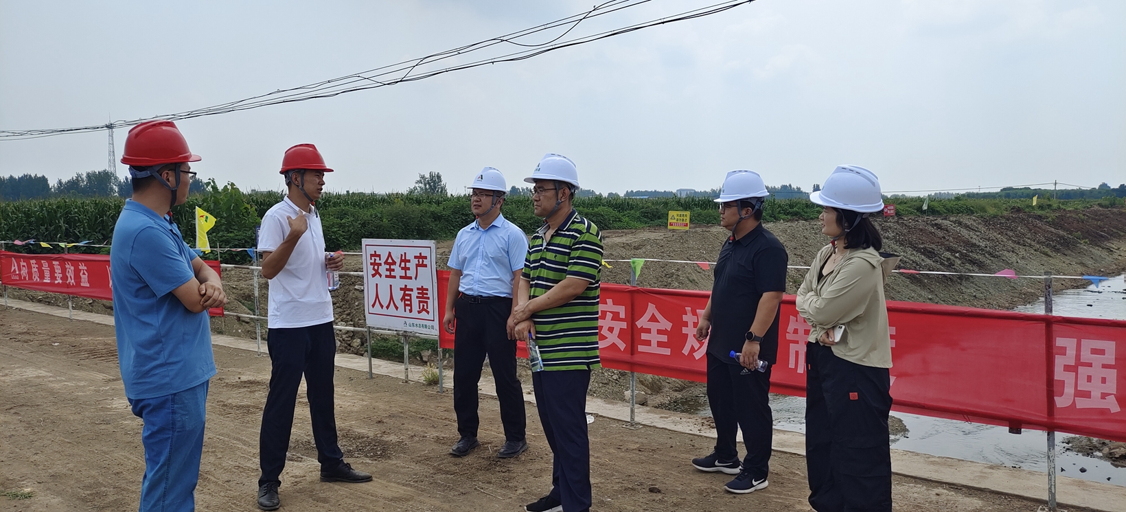 8月17日,公司安全总监郭法文,安全管理部、工程管理部相关人员一行到第三分公司郯城县草木灰河综合治理工程项目调研指导工作。