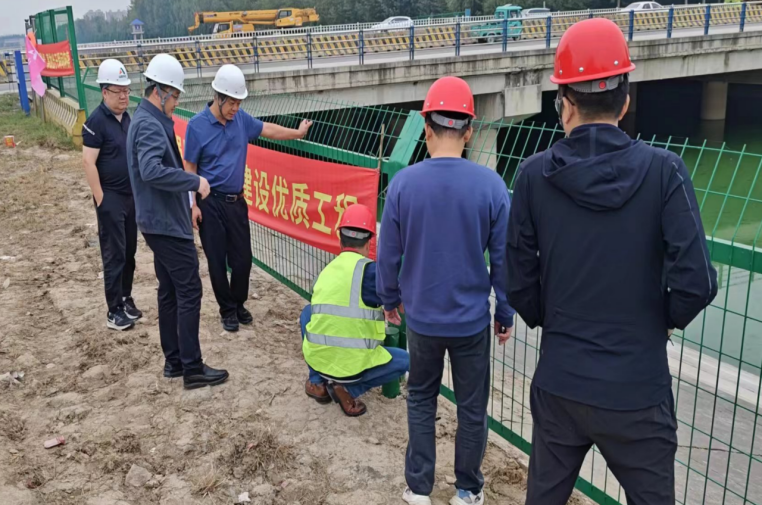10月6日,公司党委委员、副总经理李光市一行前往南水北调东线山东干线2023年安全防护网更换项目(聊城市东昌府区)调研指导工作。