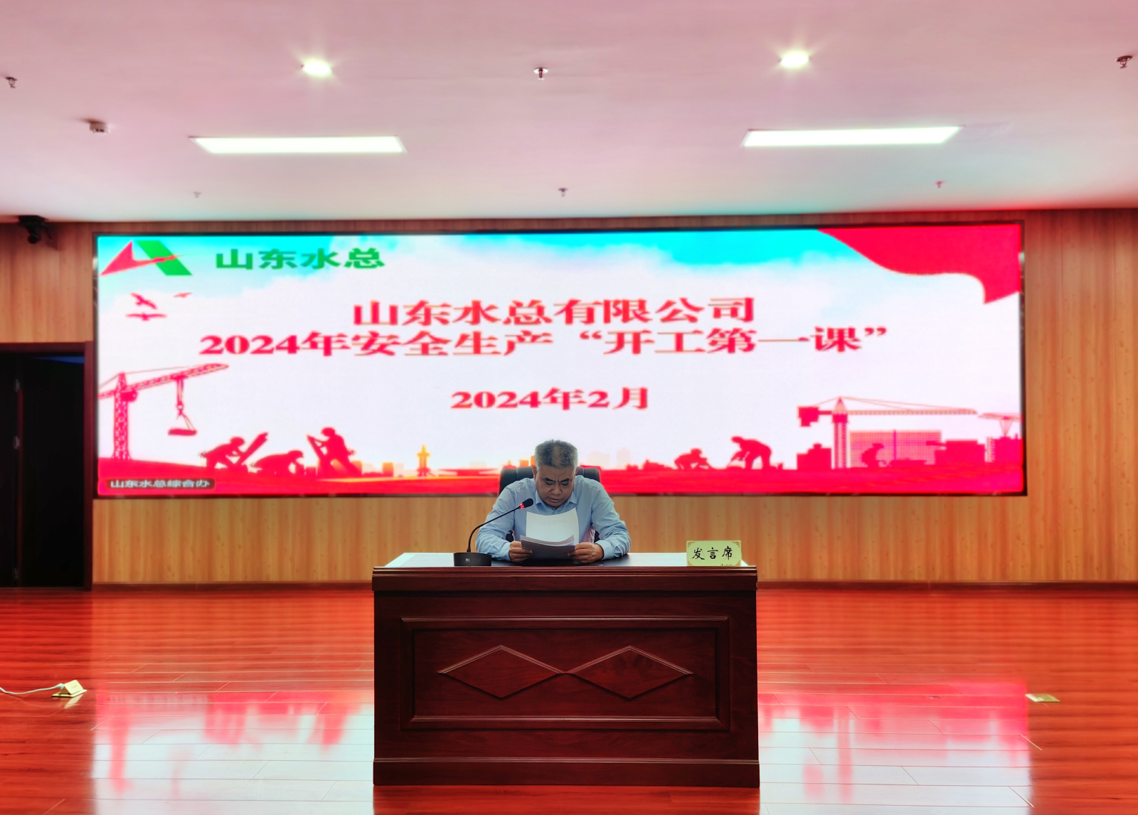 2月18日,公司组织开展安全生产“开工第一课”活动。公司党委书记、董事长刘深远同志做“开工第一课”授课,集体观看了复工复产安全教育警示片。公司领导班子、总部全体员工、驻济单位班子成员在主会场参加会议,其他权属单位人员及在建项目人员视频会议参加。