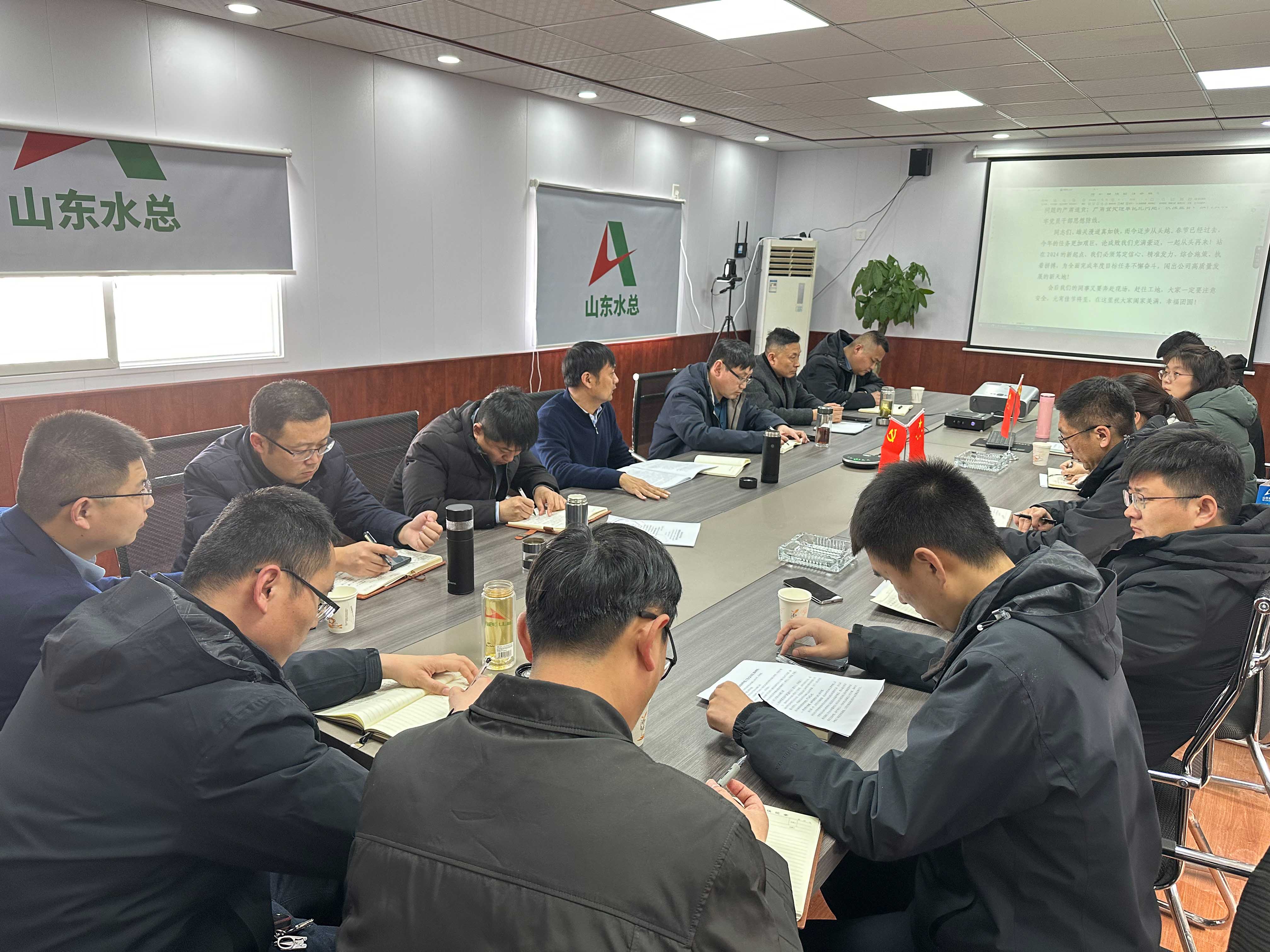 为明确2024年工作思路和目标任务,谋划部署重点工作,3月6日,第三分公司在沂南县岸堤水源项目召开2024年度工作会议,会议由党支部书记、总经理徐浩主持,副总经理、主任专家、督导专员以及主要管理人员参会。