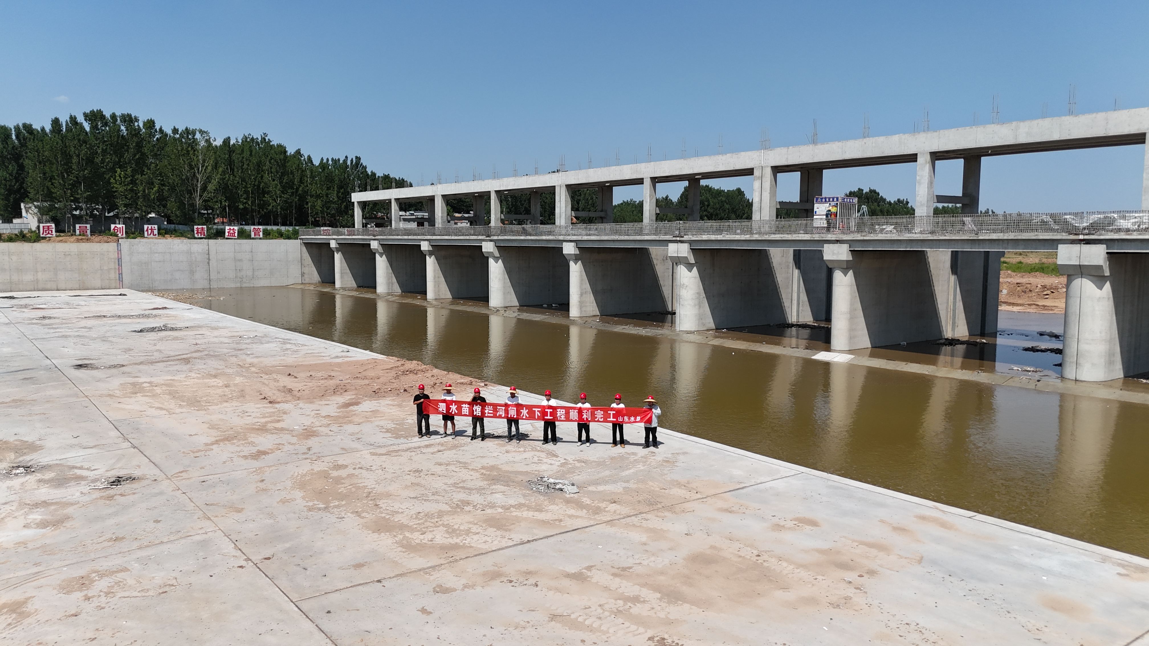 近日,随着最后一仓混凝土浇筑完成,泗水县泗河苗馆拦河闸水下工程顺利完工。