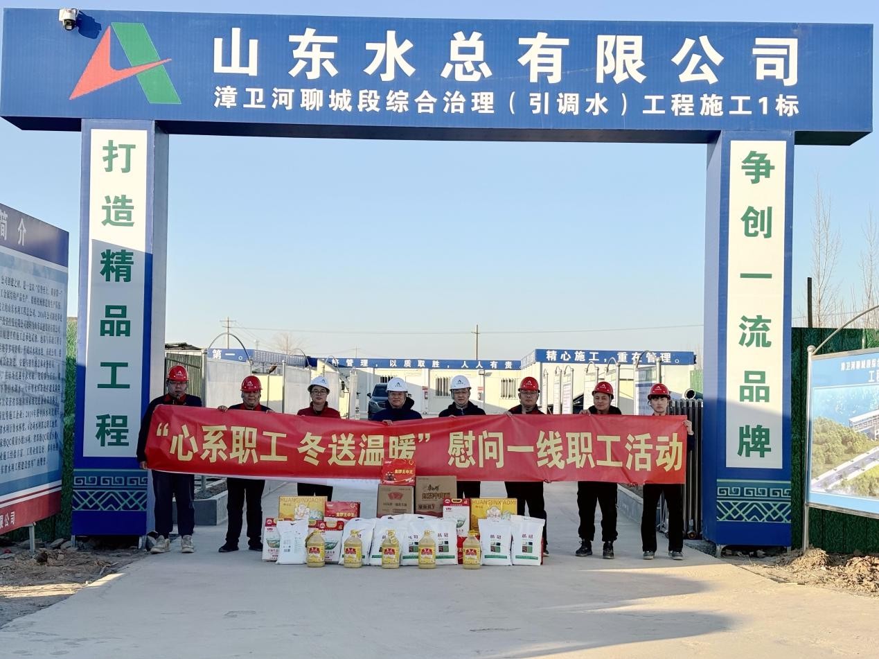 公司党委副书记、职工董事、工会主席王坤林一行莅临第二分公司漳卫河聊城段综合治理(引调水)工程施工1标项目部开展“心系职工,冬送温暖”慰问活动