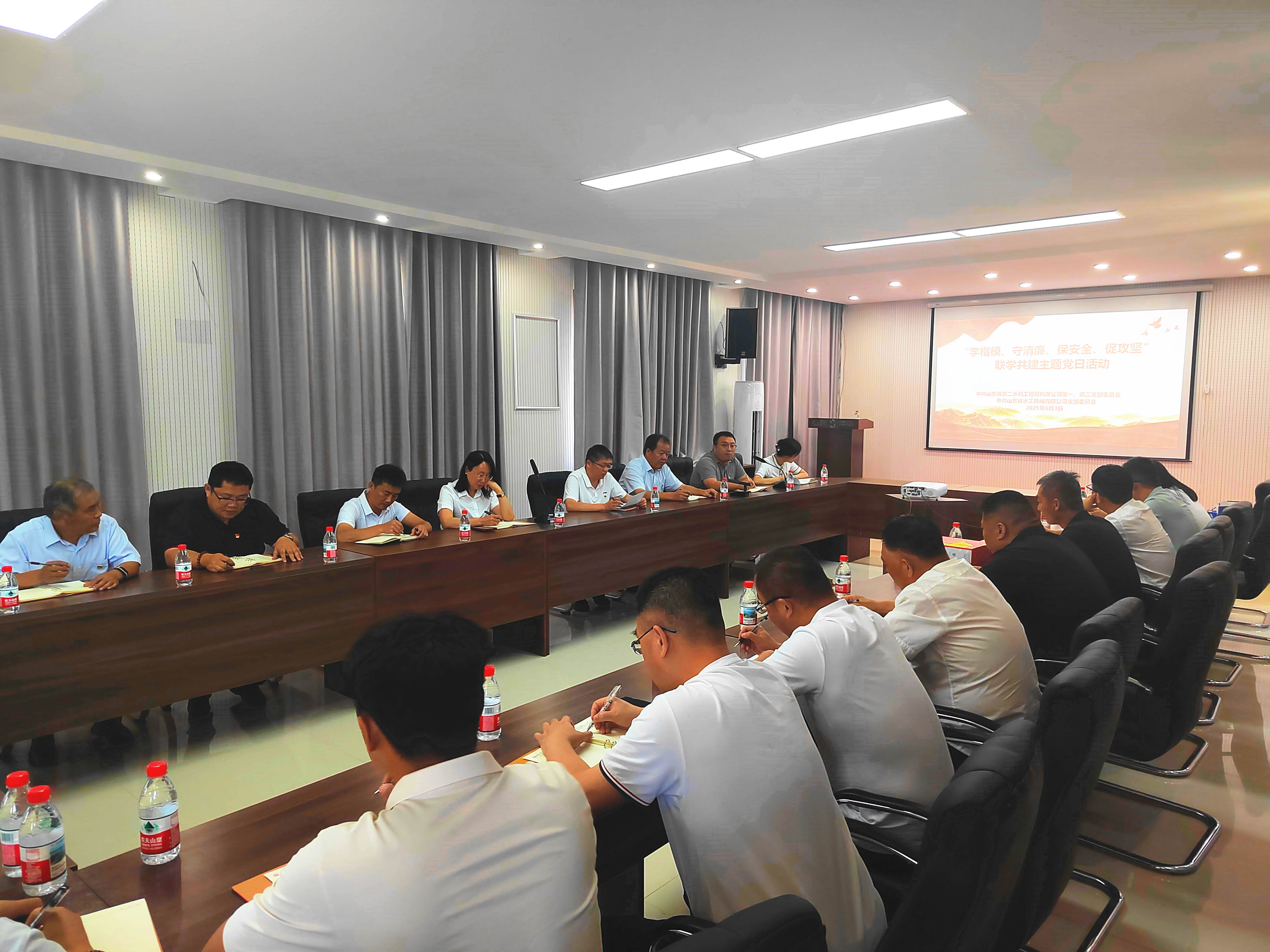 为推动深入贯彻中央八项规定精神学习教育走深走实,6月3日,二局有限公司第一、第二党支部与水工机械公司党支部联合开展“学楷模、守清廉、保安全、促攻坚”联学共建主题党日活动,以“学、守、保、促”四维联动推动党建与业务、廉政建设与安全生产同频共振。